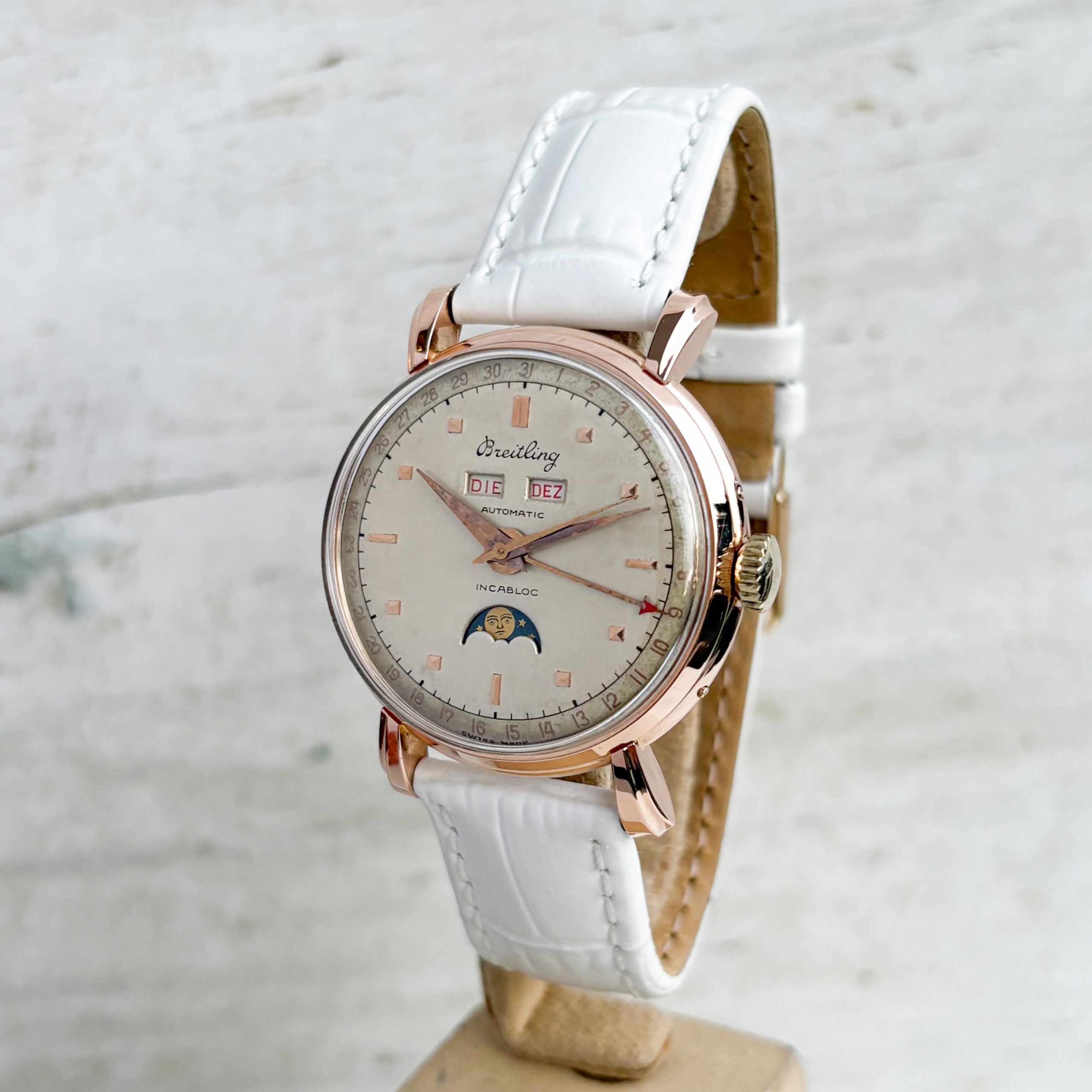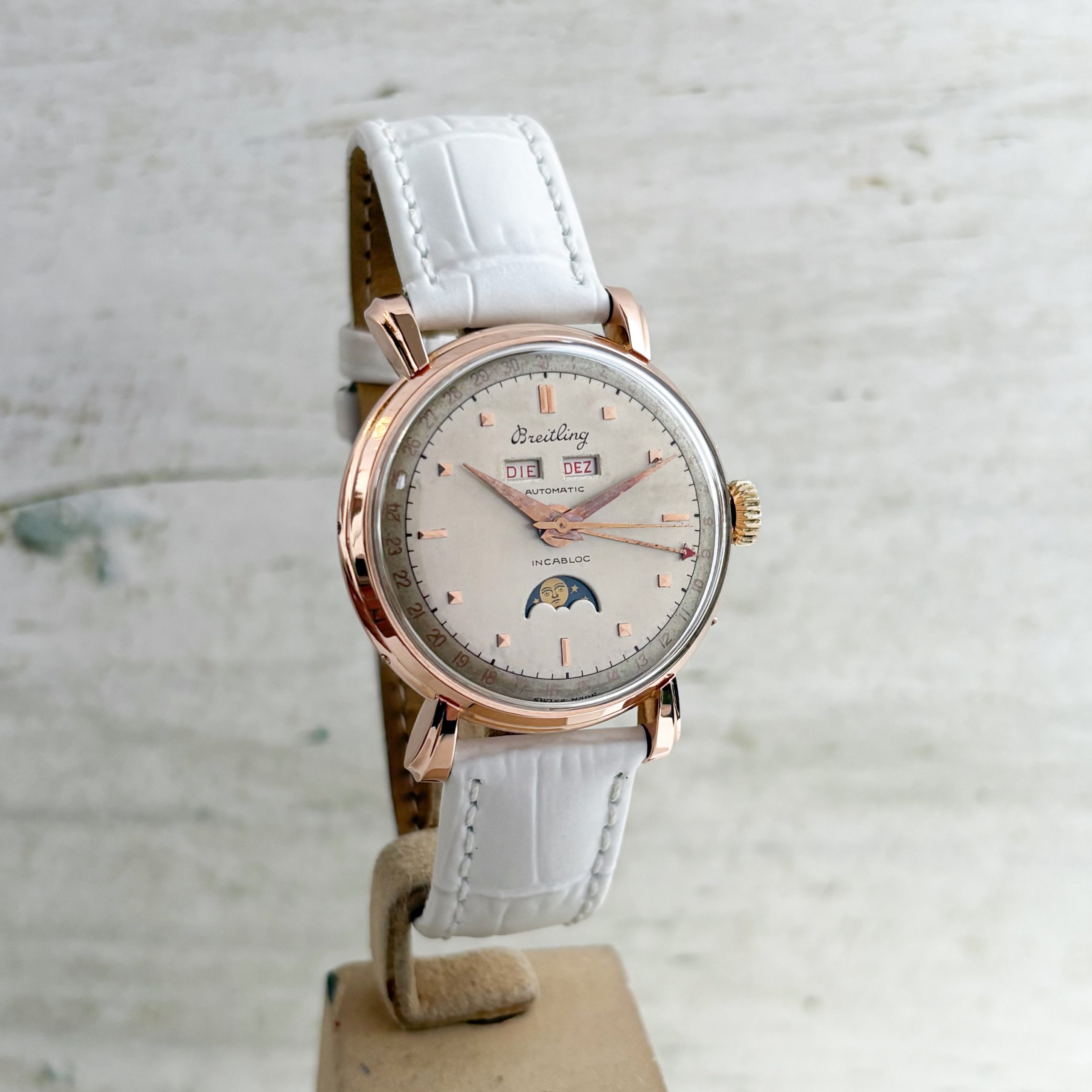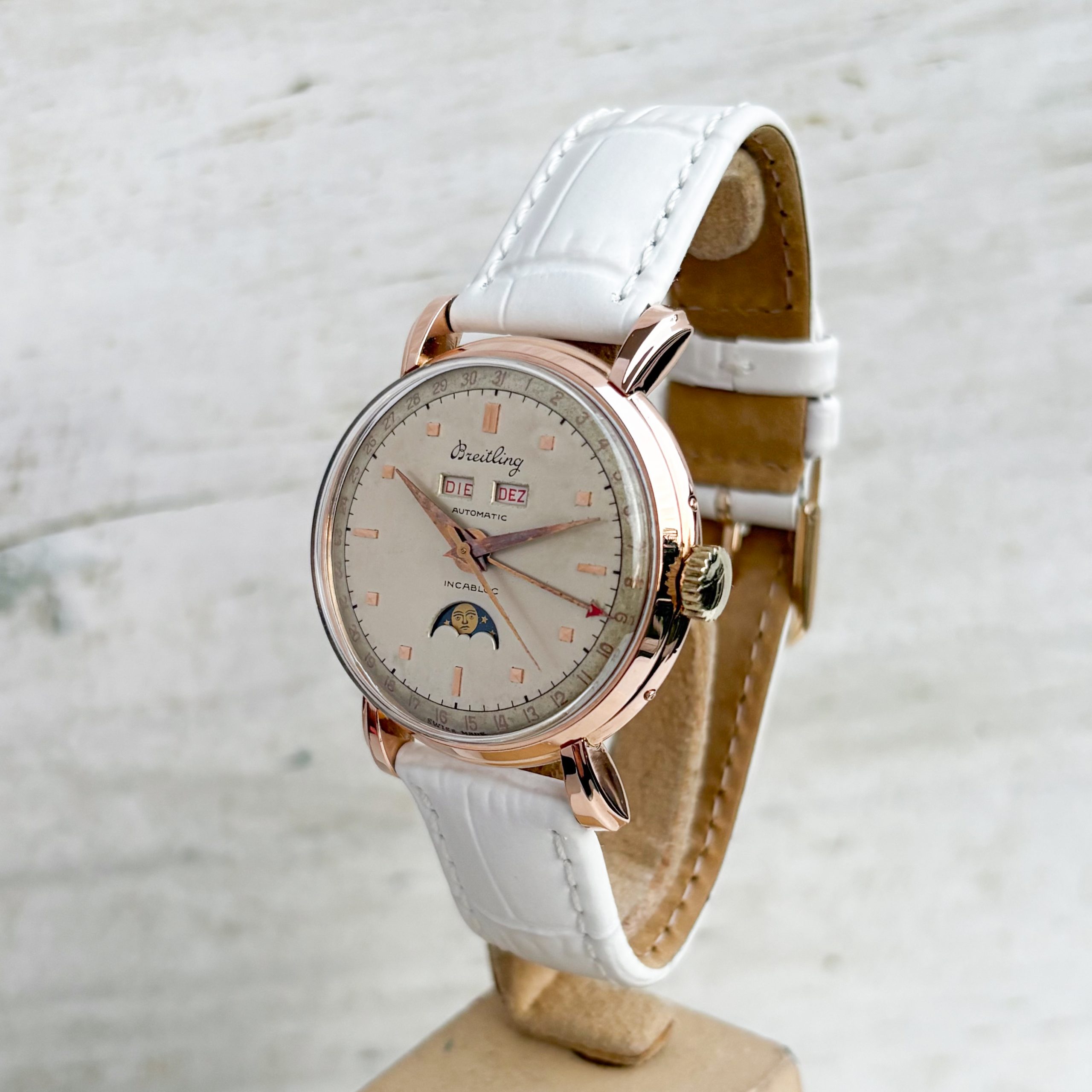 Breitling Datora Triple Date Calendar 36mm Vintage Moon Phase 18 Gold Ref: 85-28 Rose Gold Herrenuhr