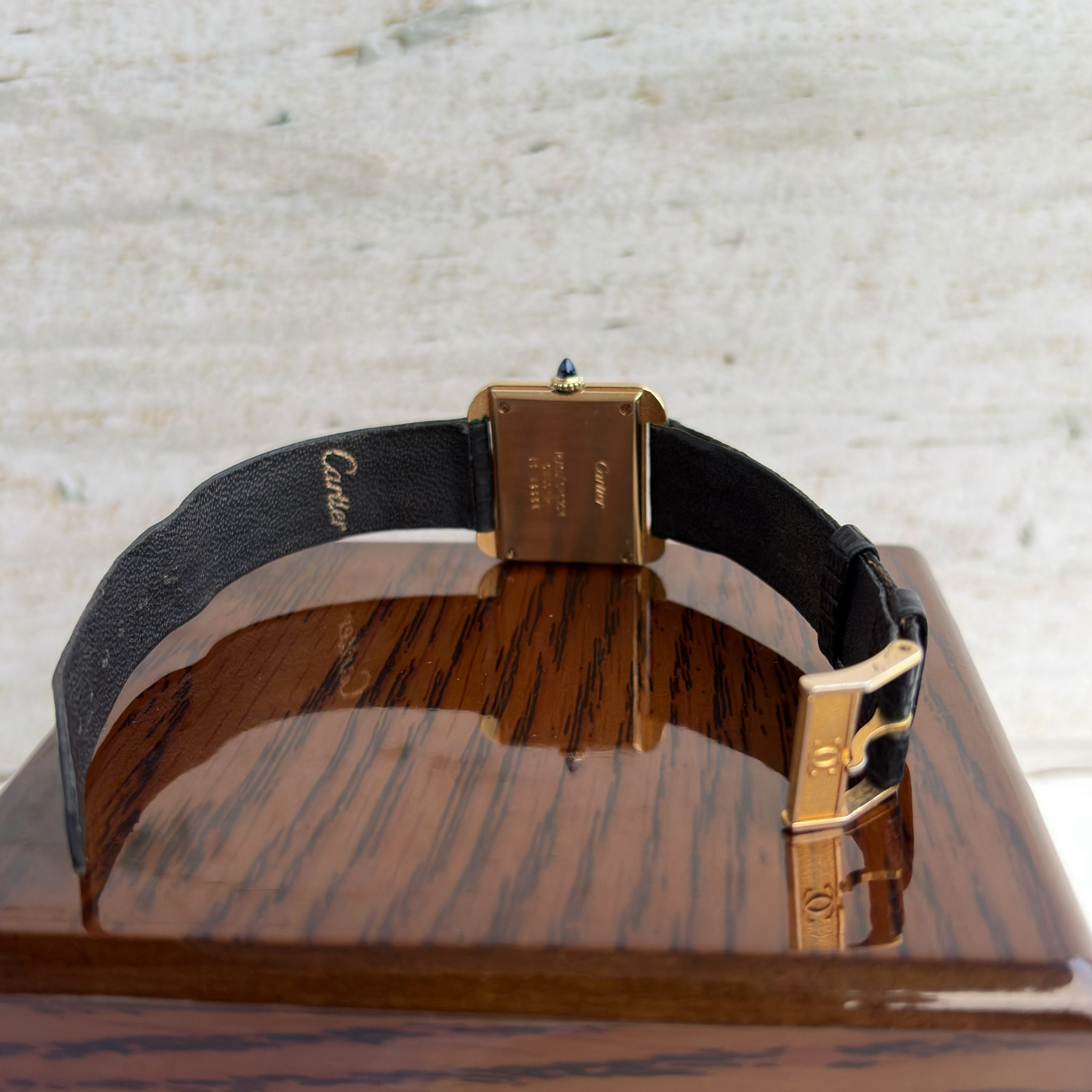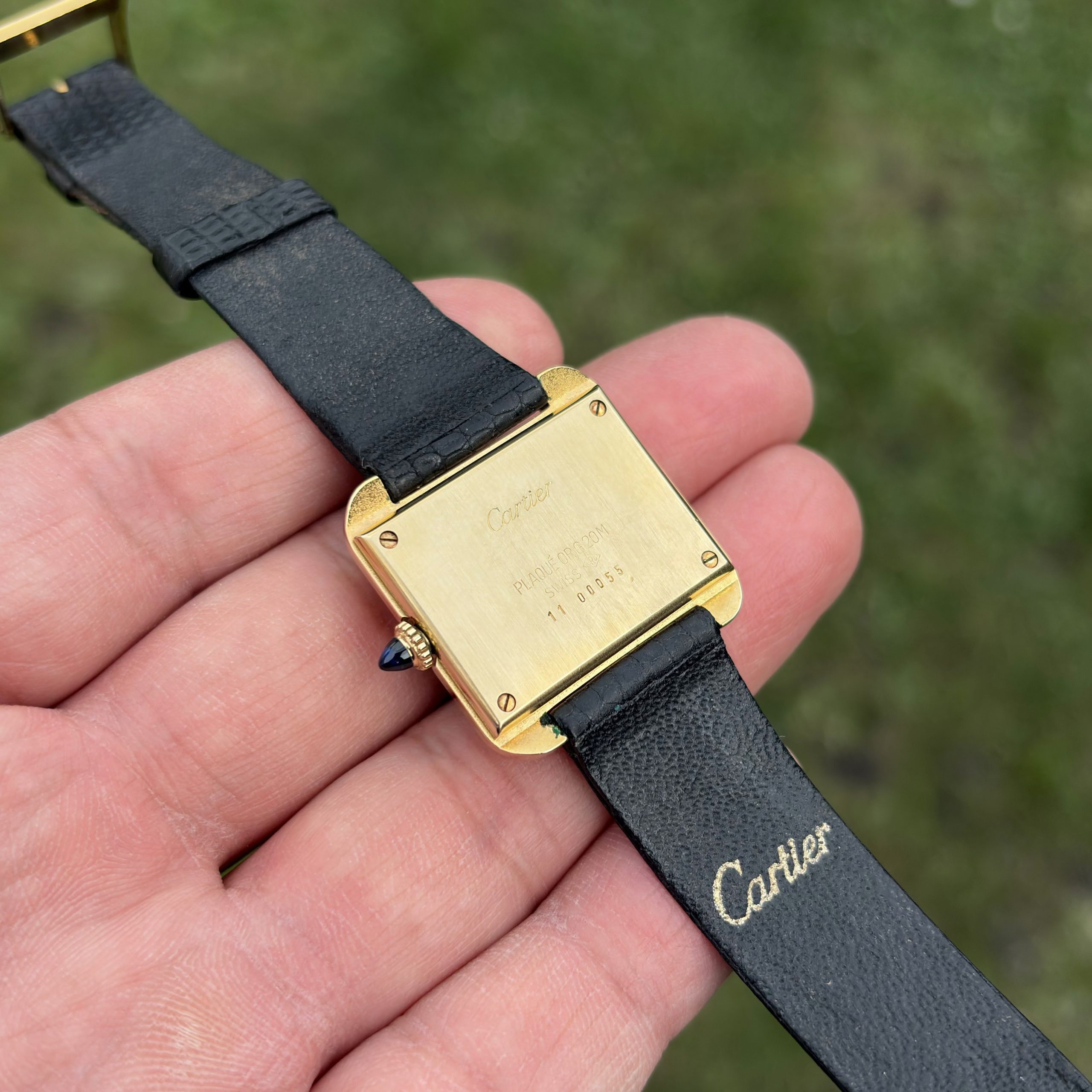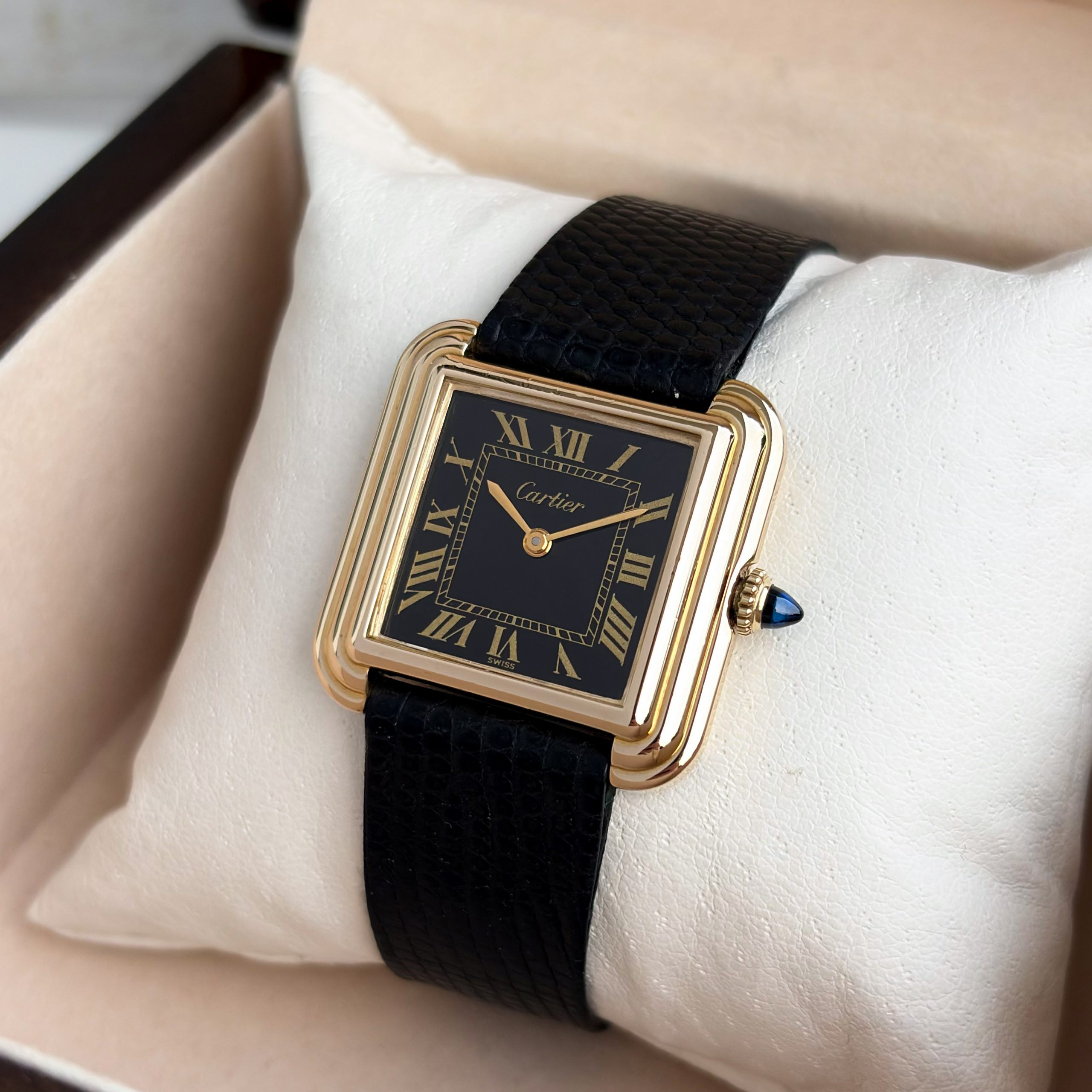 Cartier Stepped Tank Gold Plated 1100055 Black Dial 27,5mm Handaufzug Vergoldet Damenuhr