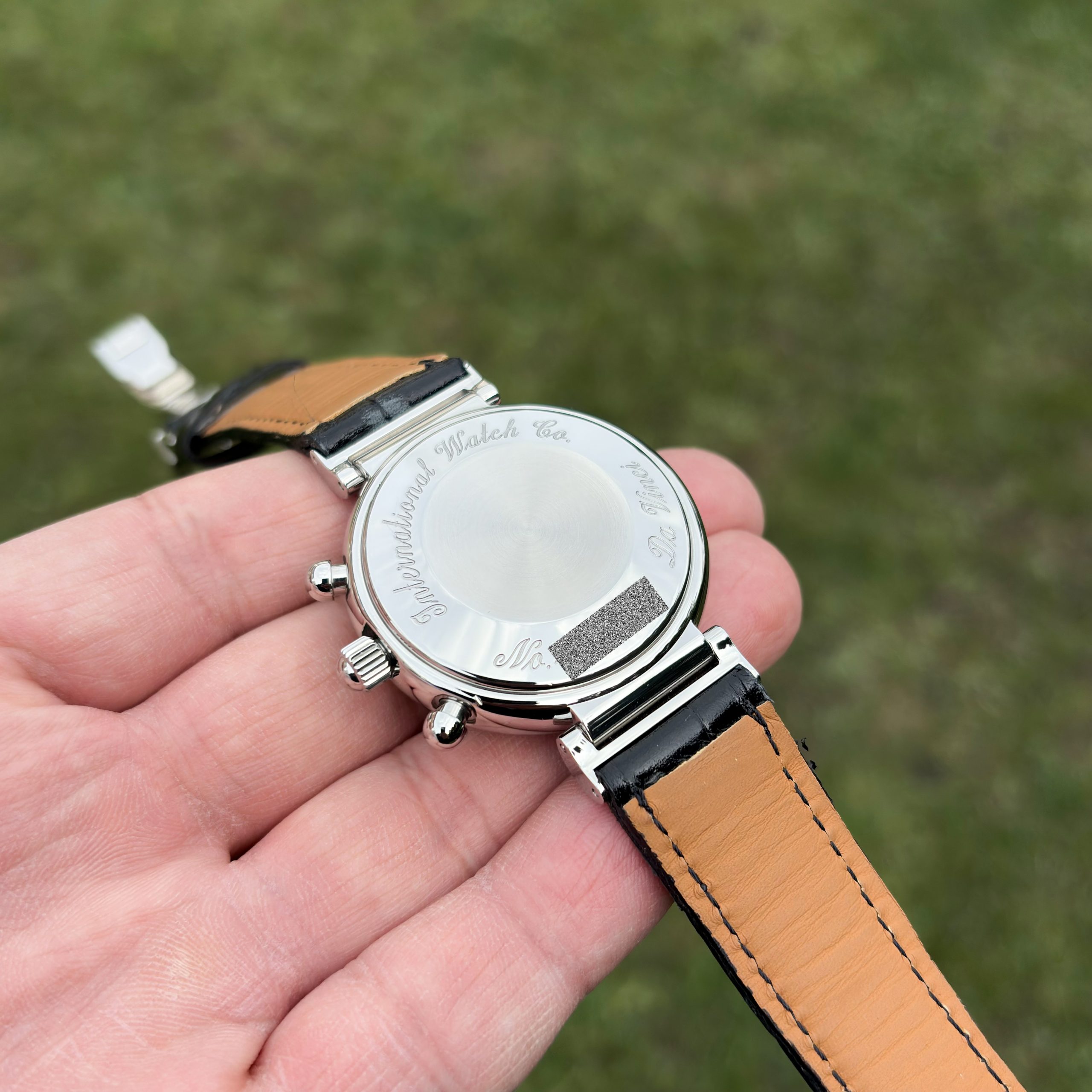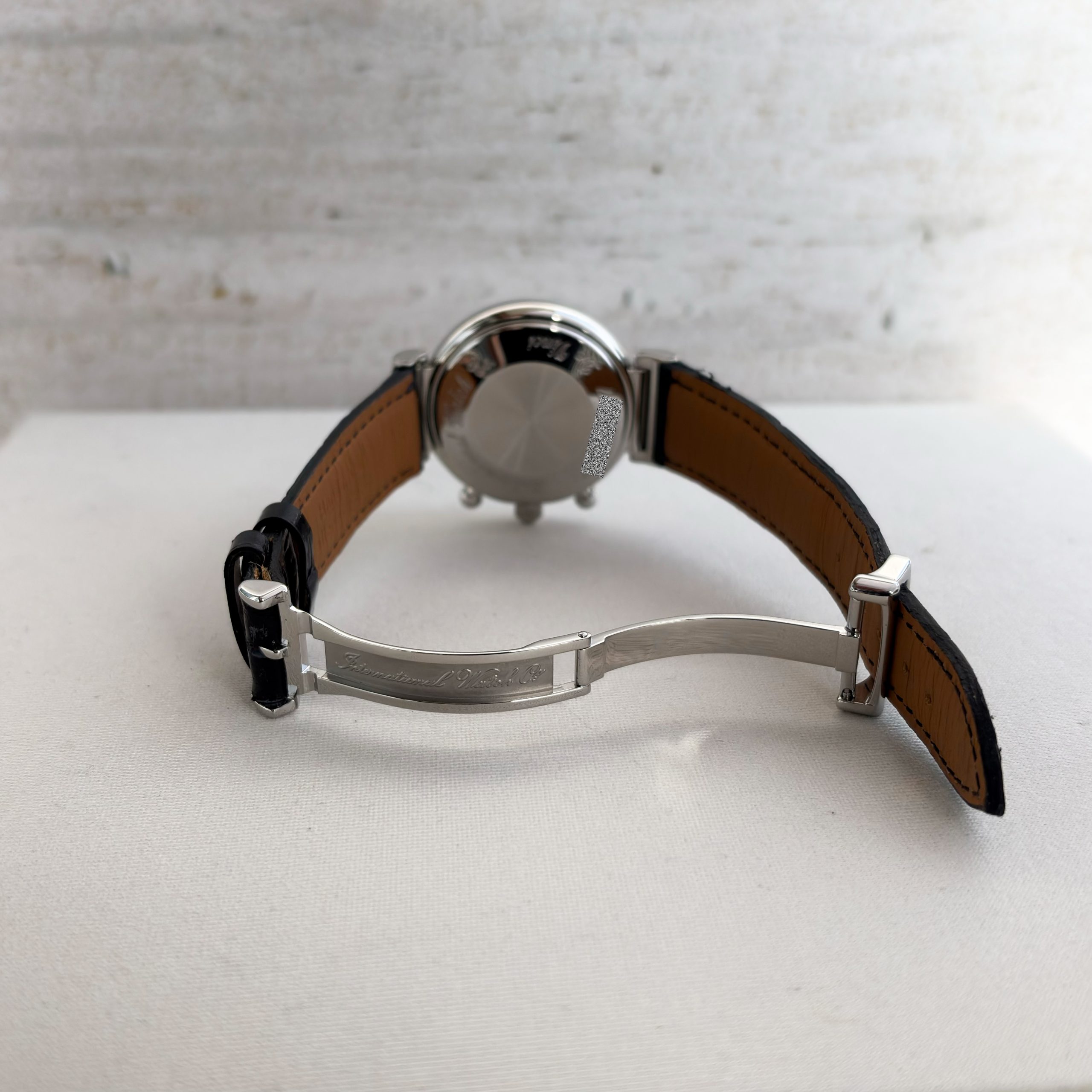 Dial: Black Crystal: Sapphir Bracelet: Leather Strap black Crown: Original IWC Crown Box: IWC Watch Box Paper: IWC Papers Working Condition: Very Good Optical Condition: Very Good Warranty: One-year warranty on used watches