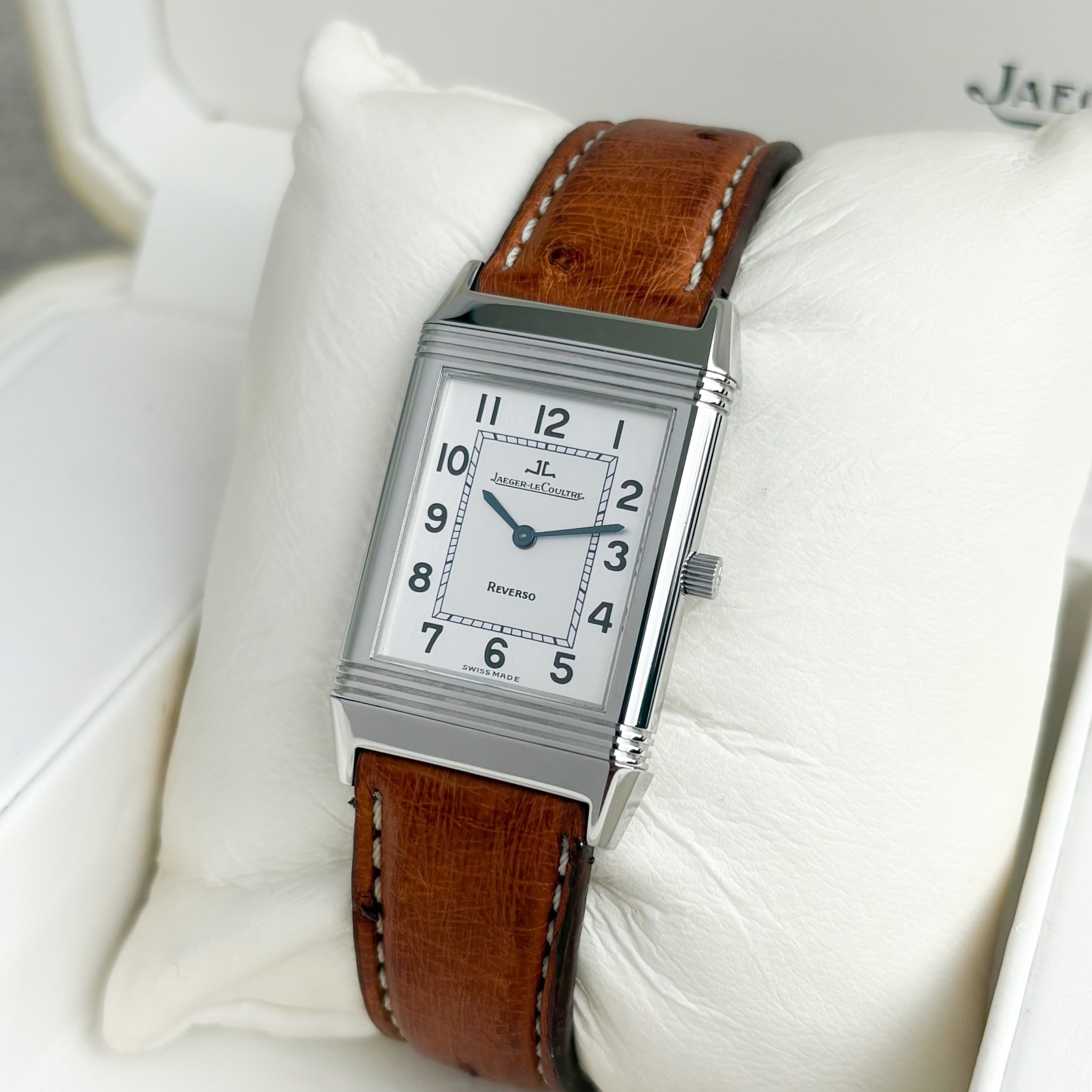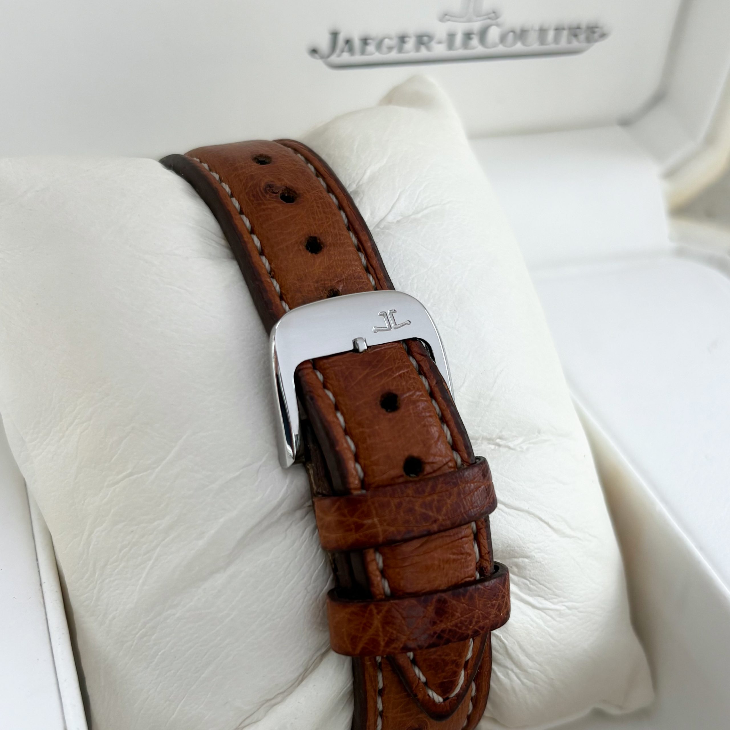 Dial: silver Crystal: sapphire Bracelet: Leather Strap Brown (Neutral) / JL Clasp Steel Crown: JL Crown Box: Jaeger-LeCoultre Watch Box Paper: Jaeger-LeCoultre Papers Working Condition: Very Good Optical Condition: Very Good Warranty: One-year warranty on used watches