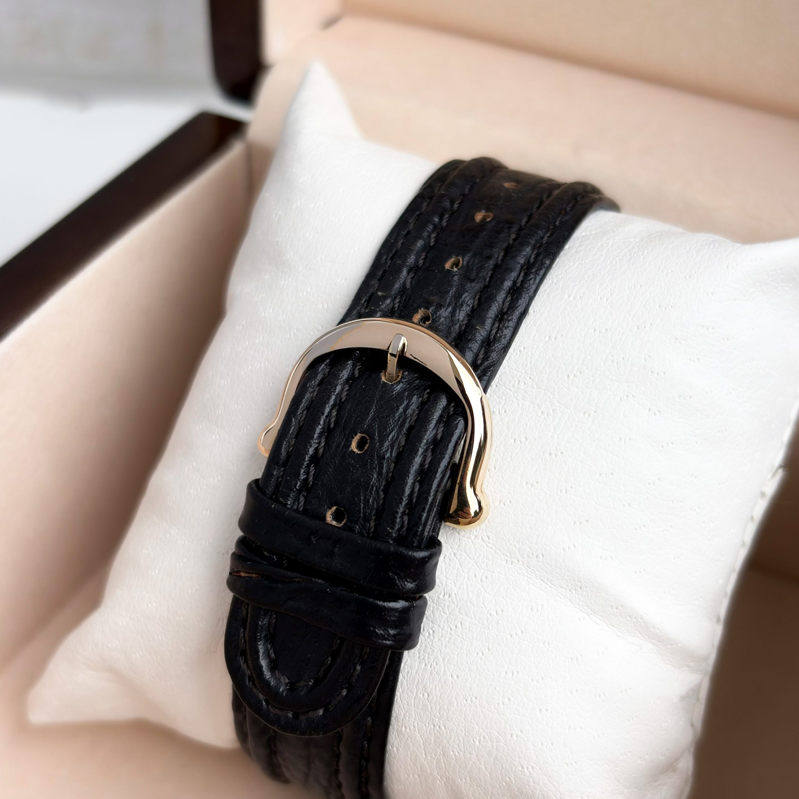 Marke: Maurice Lacroix Modell: Skeleton Ref: 12988 Uhrwerk: Handaufzug Jahr: ca. 1995 Gehäuse: Edelstahl Vergoldet 10K Zifferblatt: Gold Skelettiert Glas: Saphirglas Armband: Original Maurice Lacroix Lederarmband Schwarz Schließe: Original Maurice Lacroix Dornschließe Edelstahl Krone: Original Maurice Lacroix Krone Funktion: Stunde, Minute Box: Hauseigene Uhrenbox Papiere: Hauseigenes Echtheitszertifikat Technischer Zustand: Sehr guter Zustand Optischer Zustand: Sehr guter Zustand Garantie: Ein Jahr Garantie auf gebrauchte Uhren