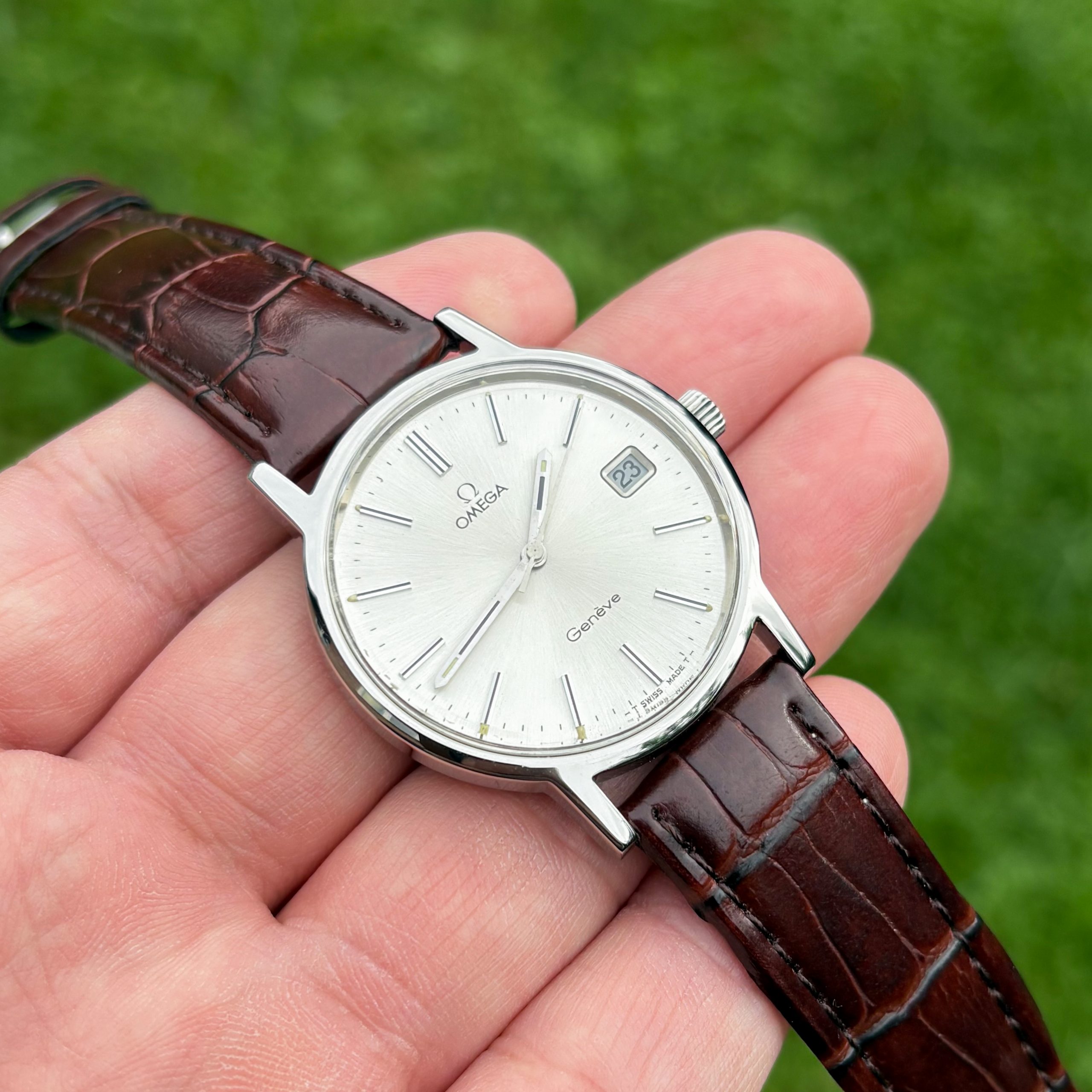 Omega Geneve 136.0104 Vintage 35mm aus 1974 Kaliber 1030 Stahl Handaufzug Herrenuhr