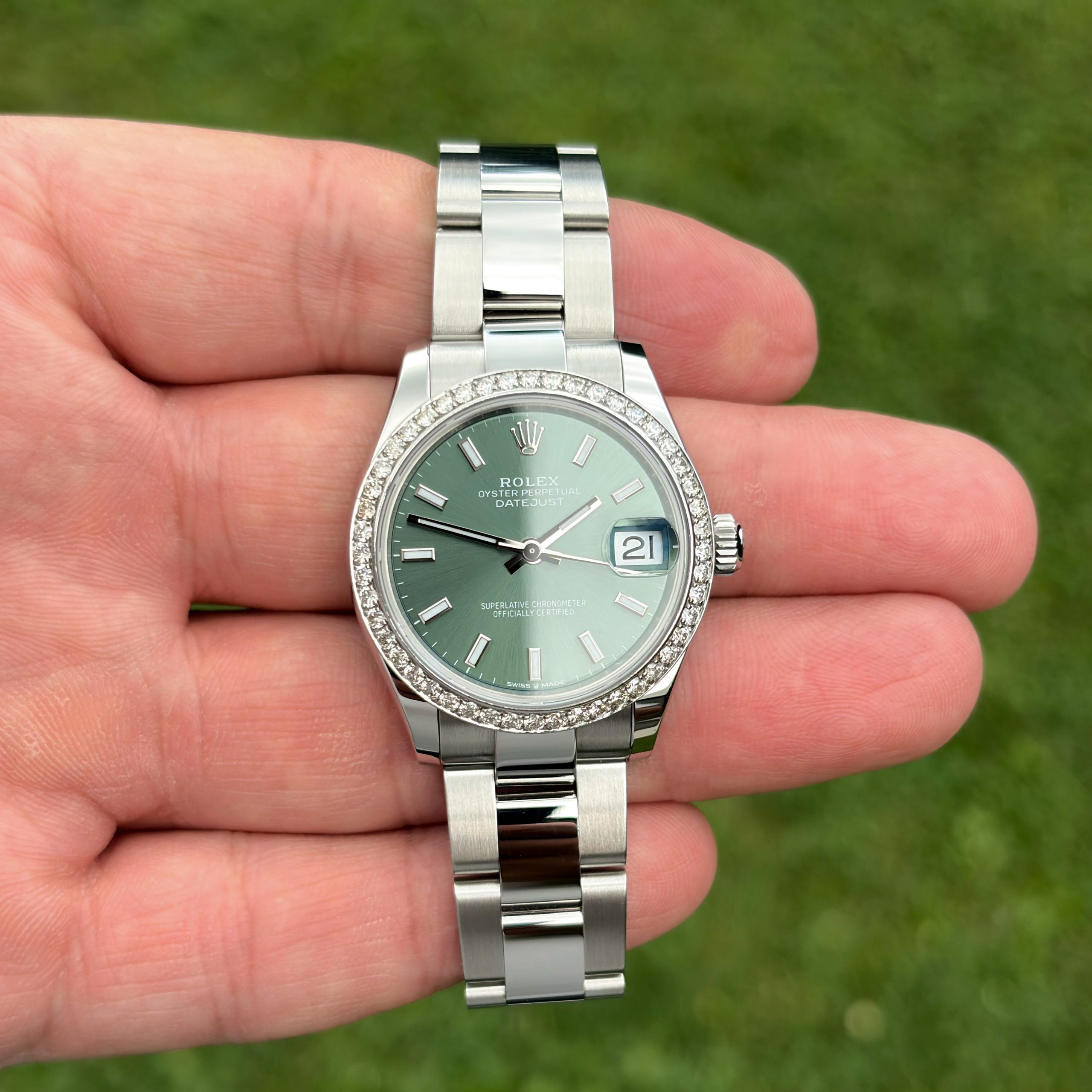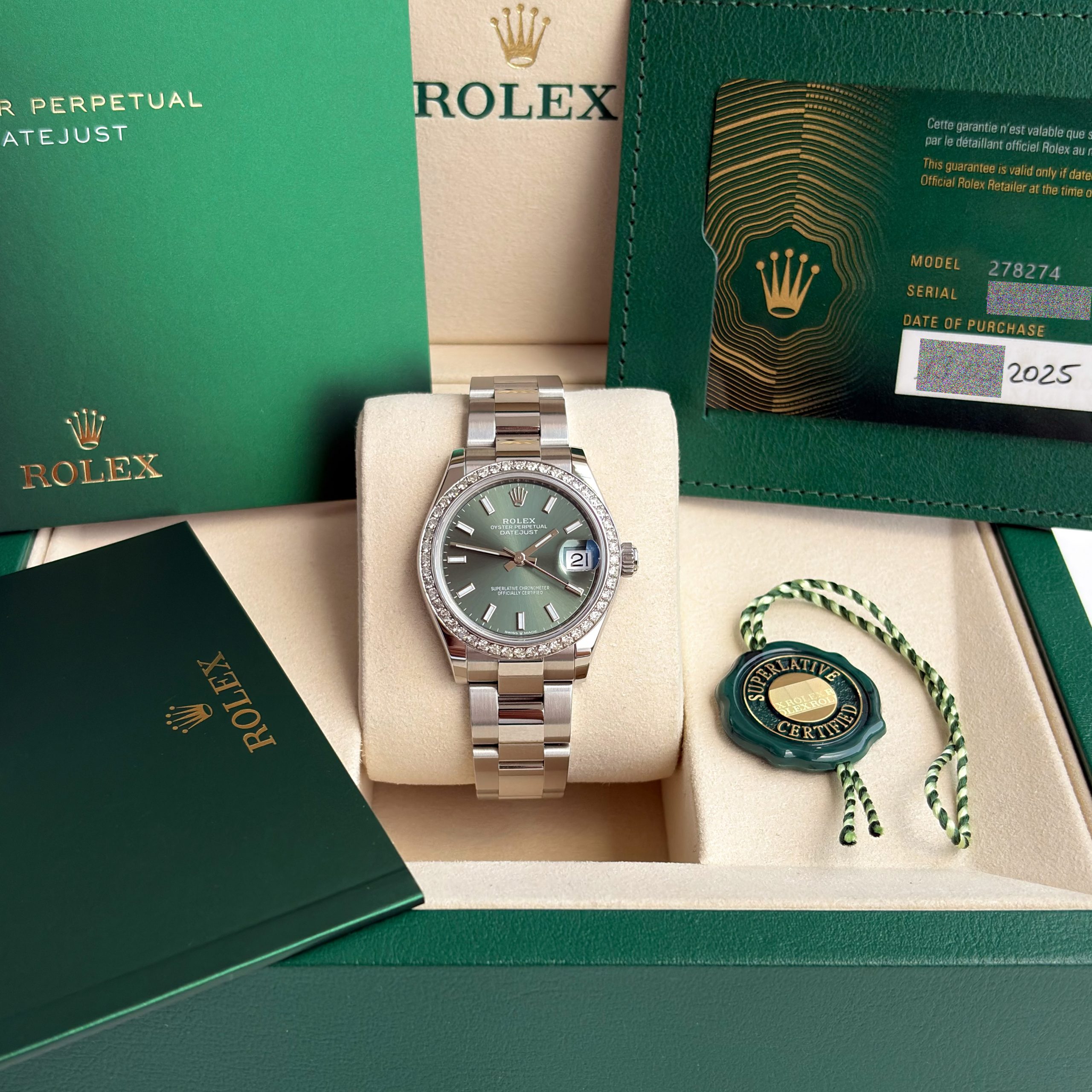 Rolex Datejust 31mm 2025 Full Set UNWORN Diamanten Grün 278274 Diamond