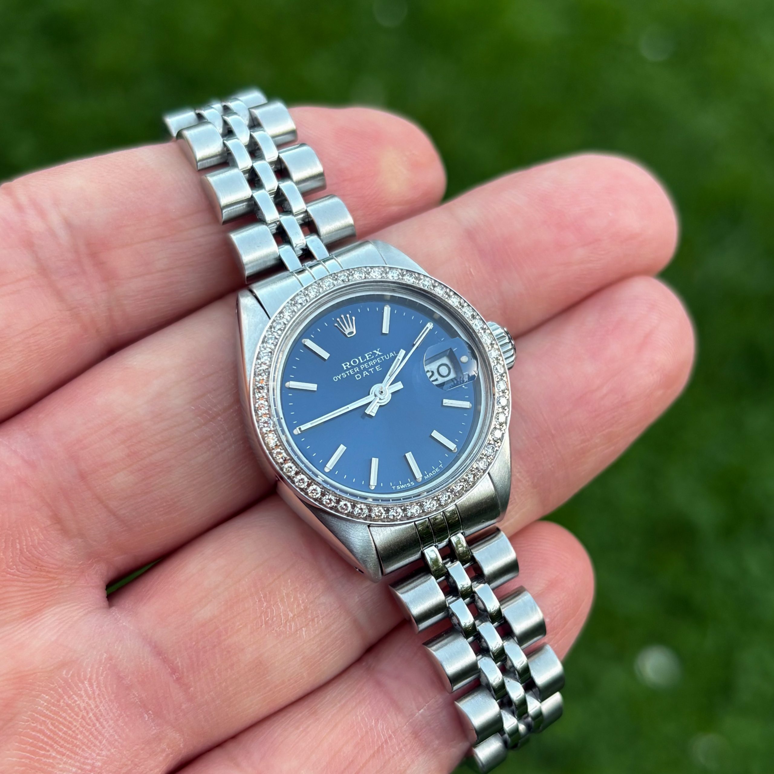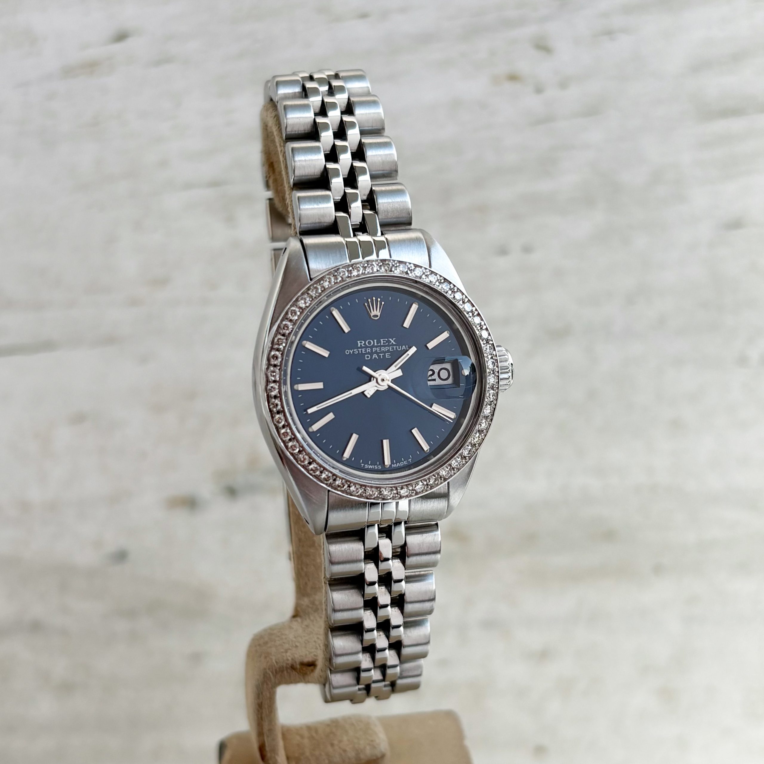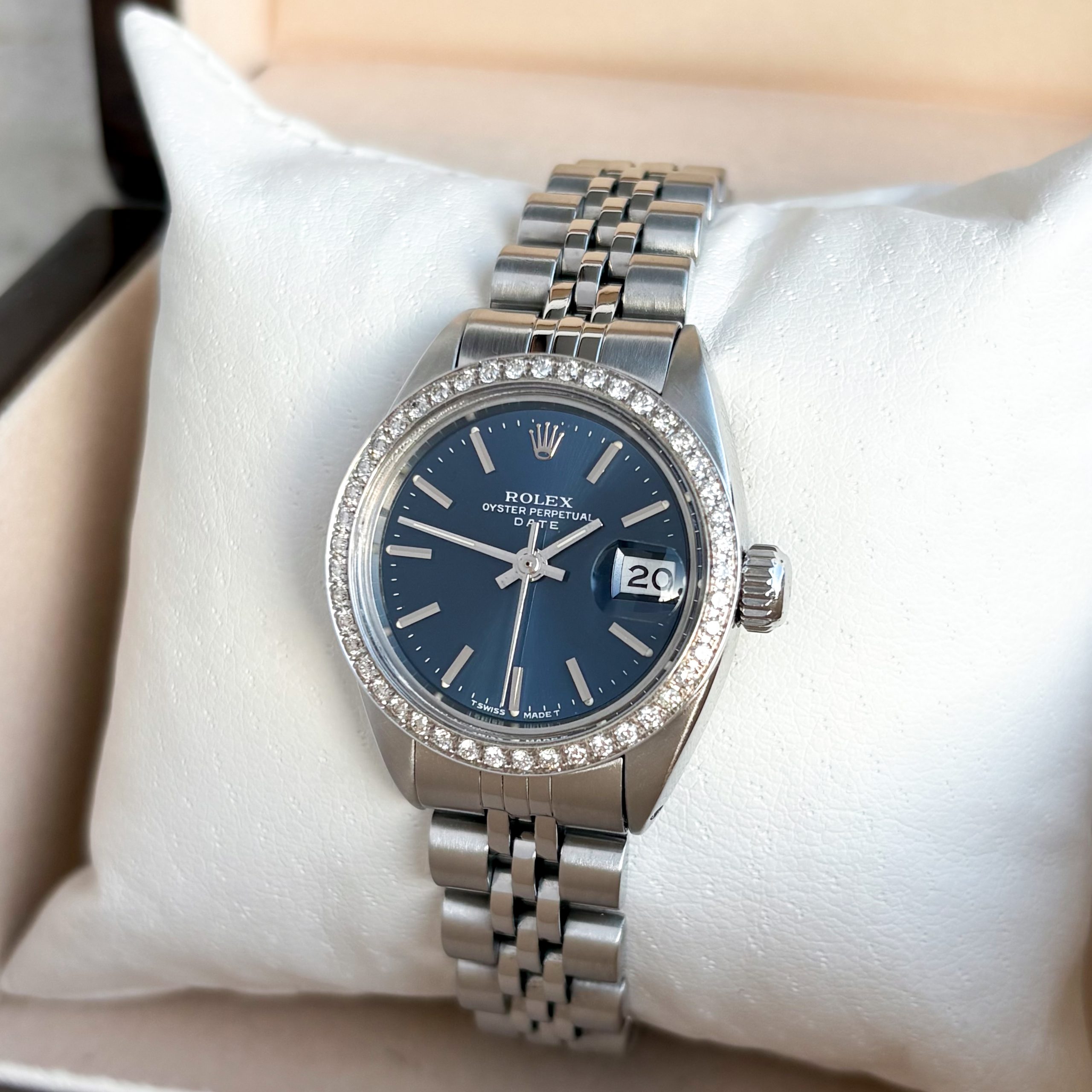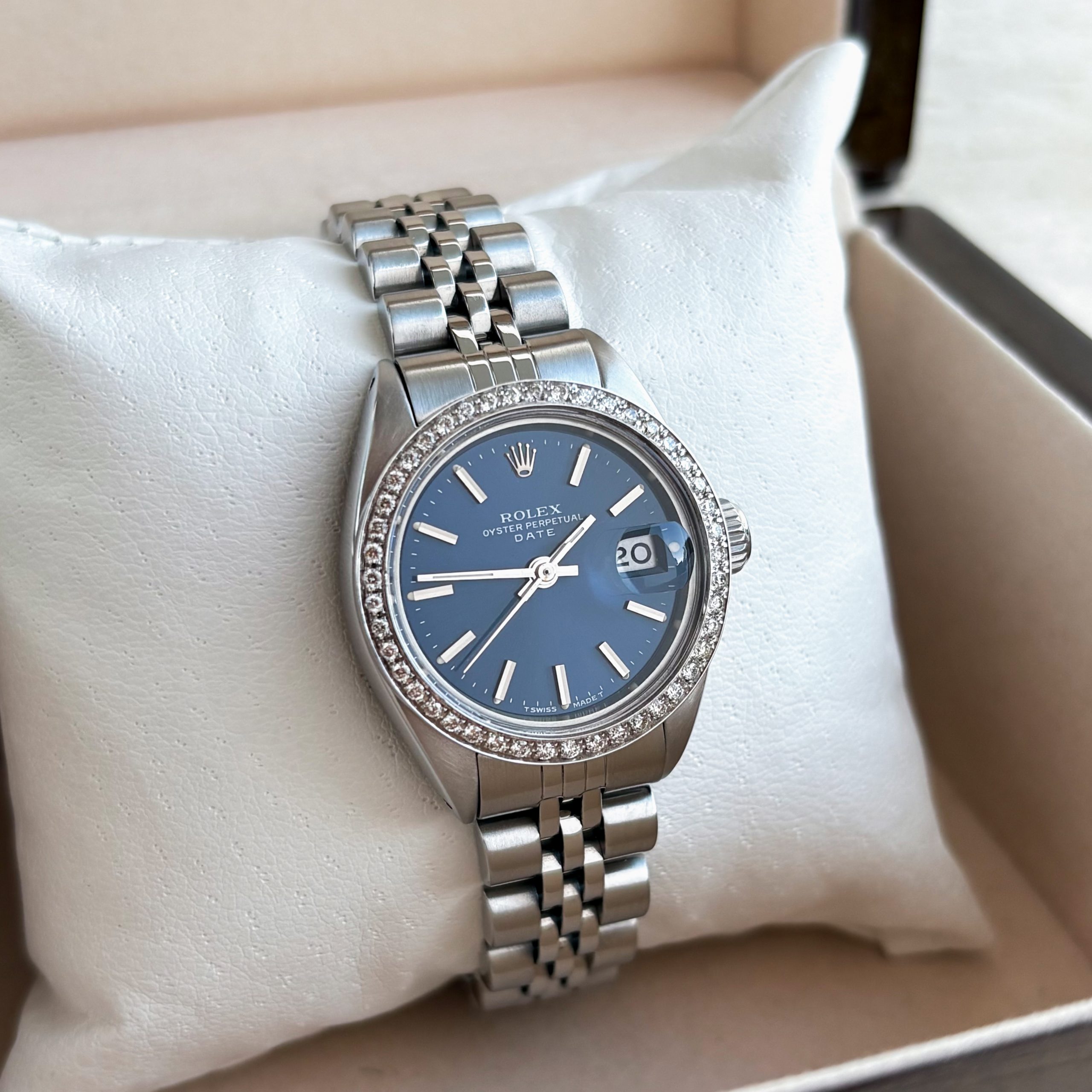 Rolex Lady Date 26mm aus 1981 Diamanten 6917 Stahl Zifferblatt Blau Damenuhr