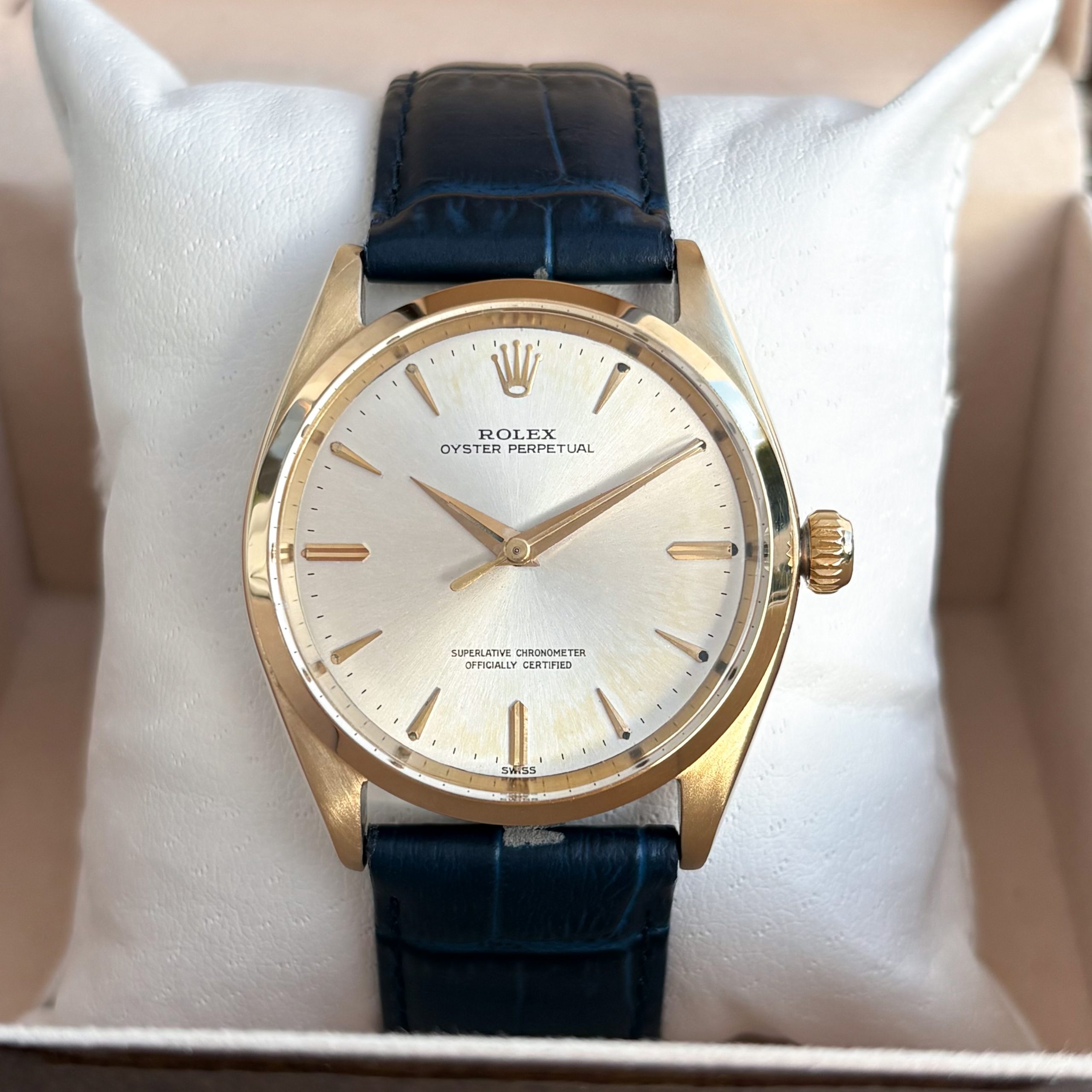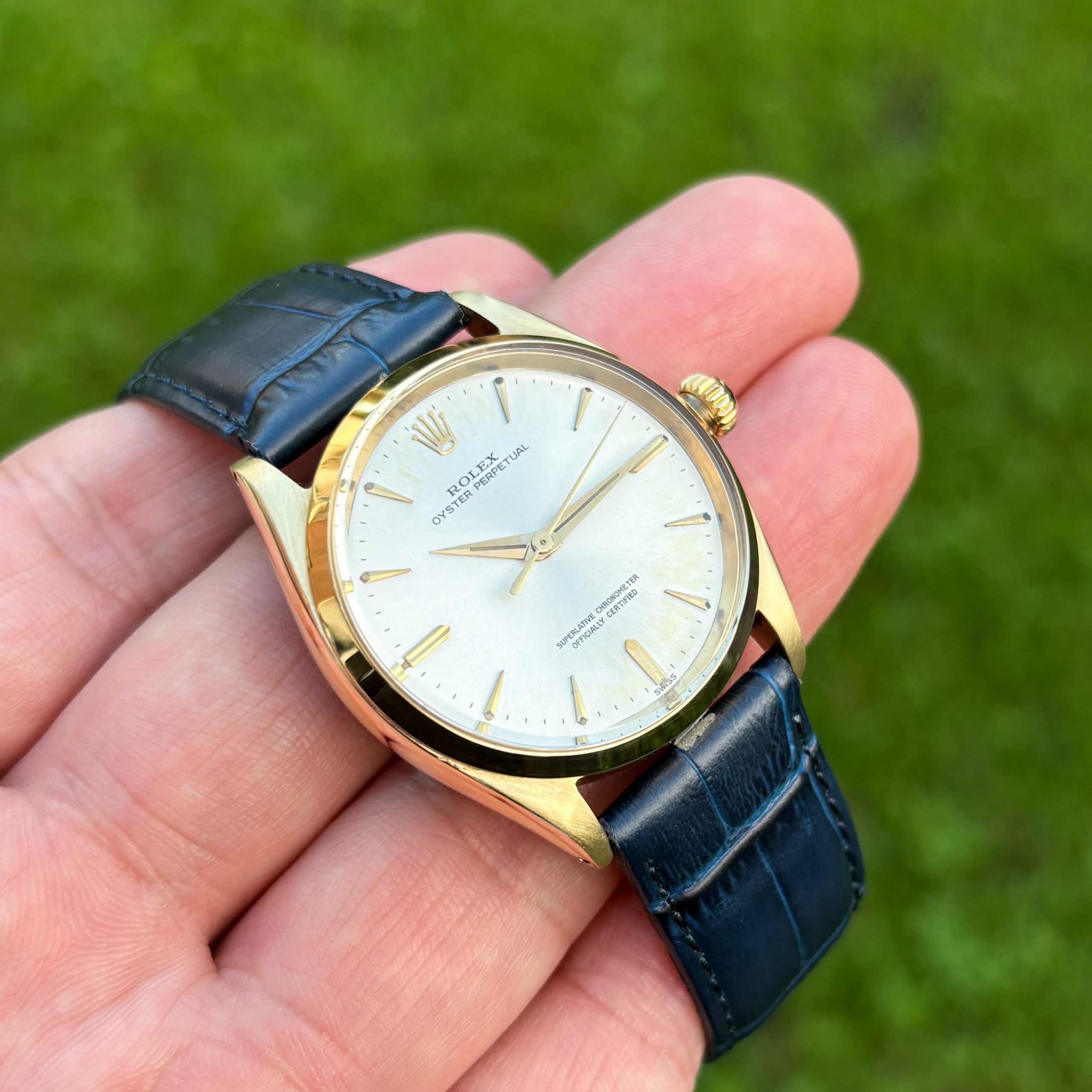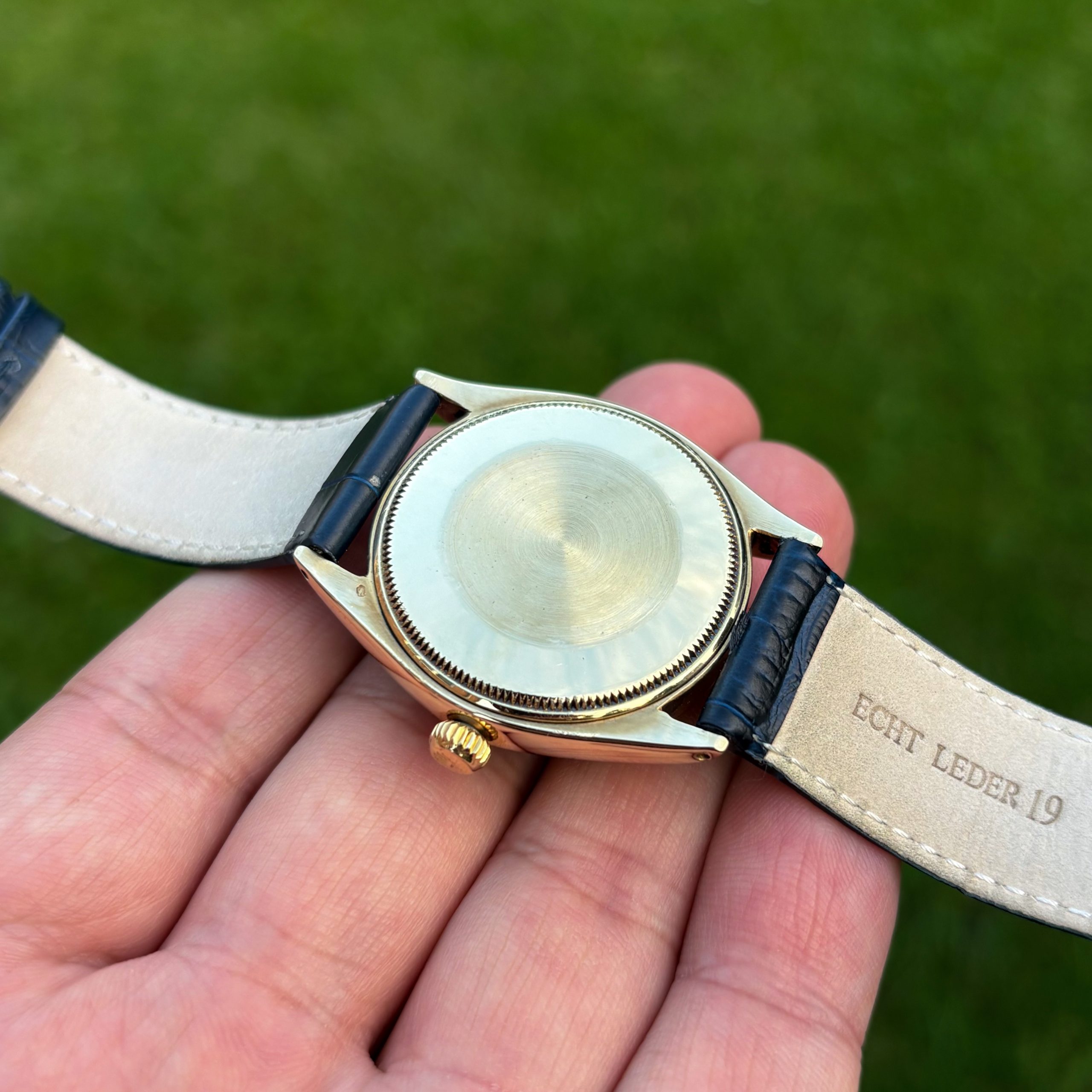 Rolex Oyster Perpetual 34 mm 1007 Kaliber 1560 Automatik Gelbgold 1951 Vintage 14k Gold Herrenuhr