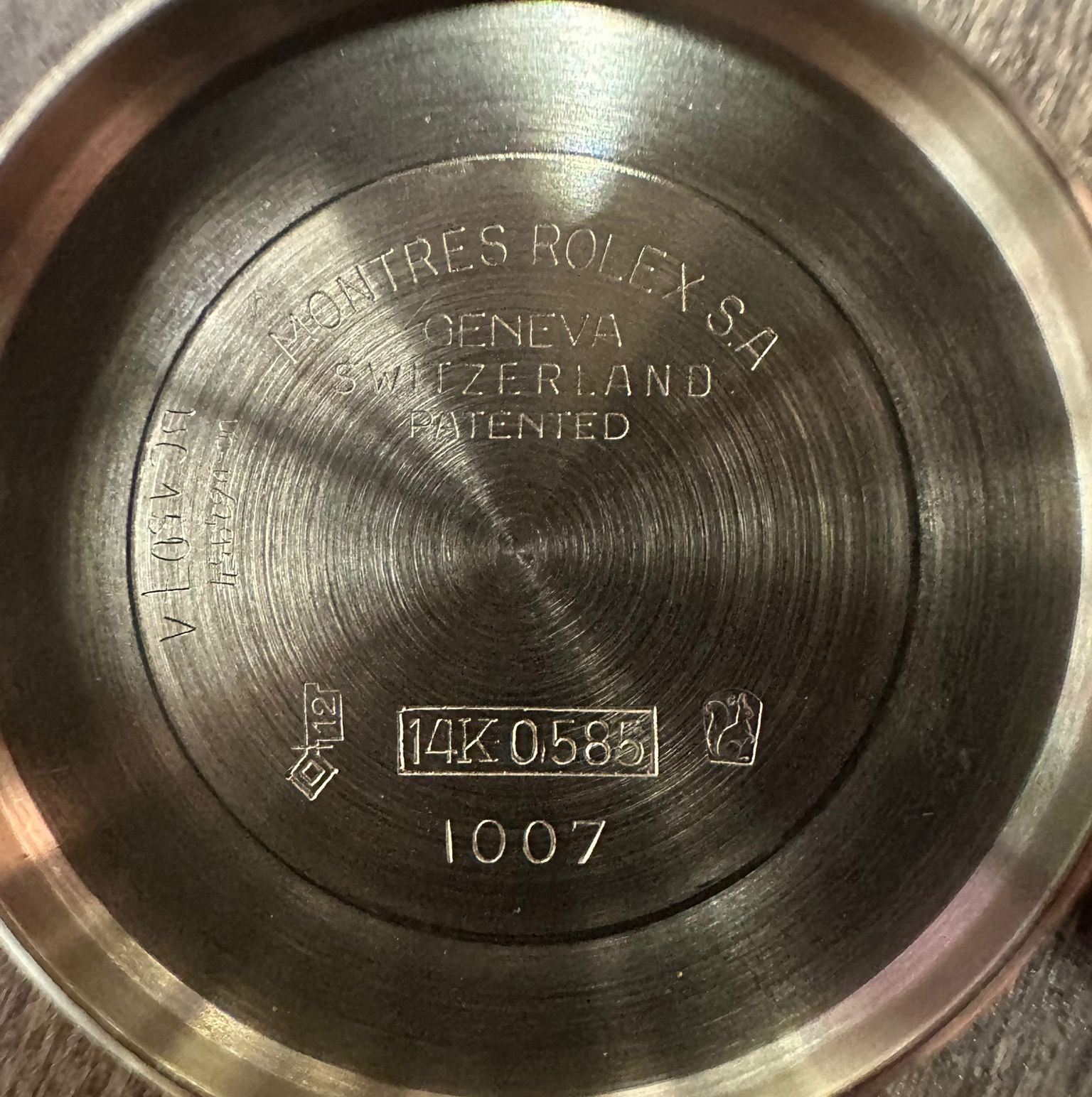 Bezel: 14k yellow gold Dial: Rolex dial champagner Crystal: Plexiglas Bracelet: leather strap black (neutral) Crown: Rolex Crown Box: Our company's Watch Box Paper: Certificate of Authenticity Working Condition: Very good Optical Condition: Very good Warranty: One-year warranty on used watches