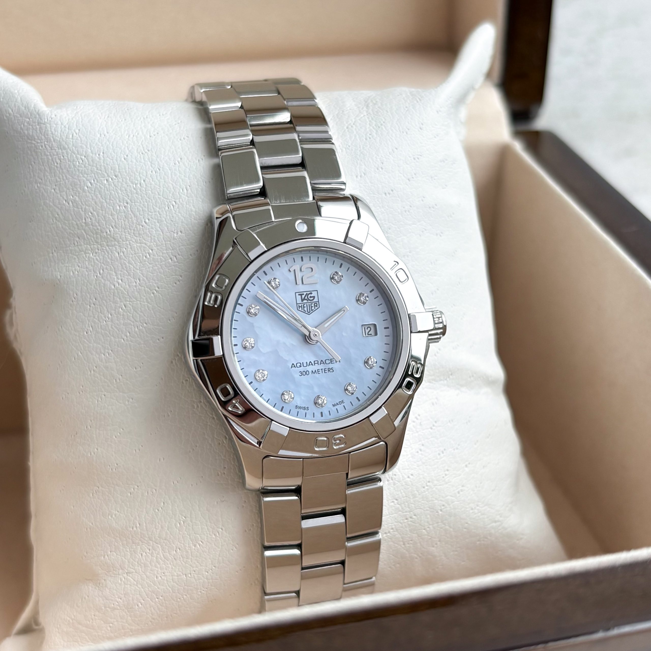 Dial: mother-of-pearl Crystal: saphhire Bracelet: Steel Bracelet TAG Heuer Crown: TAG Heuer Crown Box: Our company's watch box Paper: TAG Heuer Papers Working Condition: Very Good Optical Condition: Very Good Warranty: One-year warranty on used watches